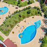 Zu den Einrichtungen für Selbstversorger gehört eine voll ausgestattete Küche. Um ihren Aufenthalt zu bereichern, können Gäste eine Sonnenterrasse, Wasserrutschen und die Gärten nutzen und sogar an Fitness-Stunden teilnehmen. Hier erwartet Sie ein unvergesslicher Aktivurlaub und Abenteuer mit Minigolf. Das Apartment verfügt über einen privaten Swimmingpool und eine Terrasse.